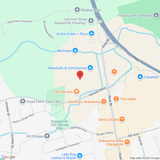 Located within the Healthy Smile, located off of First Street. Drive around behind the Tim Hortons.
